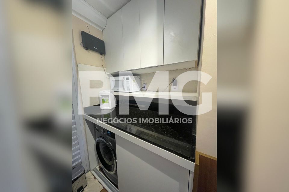 A cozinha é um verdadeiro diferencial: planejada com armários que vão até o teto, ela já vem equipada com fogão cooktop, forno embutido e coifa (todos com apenas 1 ano de uso), além de torneira com água quente. A lavanderia foi otimizada com bancadas e armários aéreos que servem como despensa, e o corredor surpreende com um roupeiro de 3 portas espelhadas, unindo funcionalidade e amplitude.