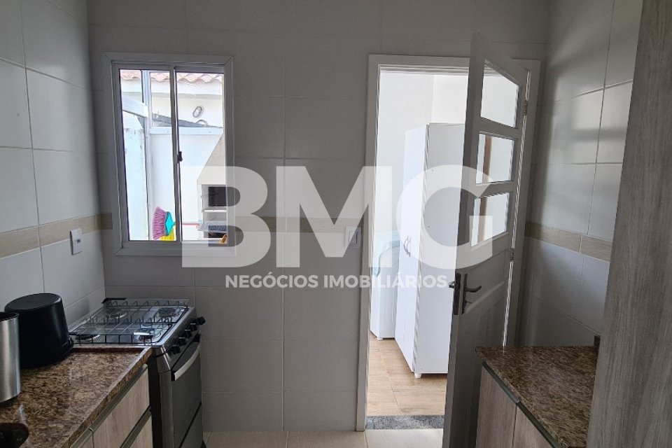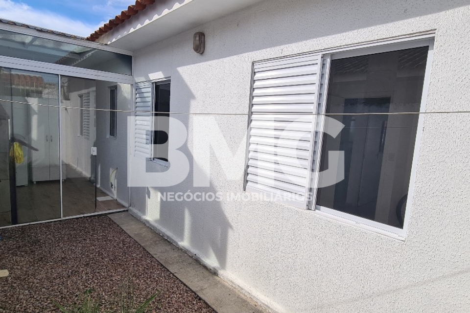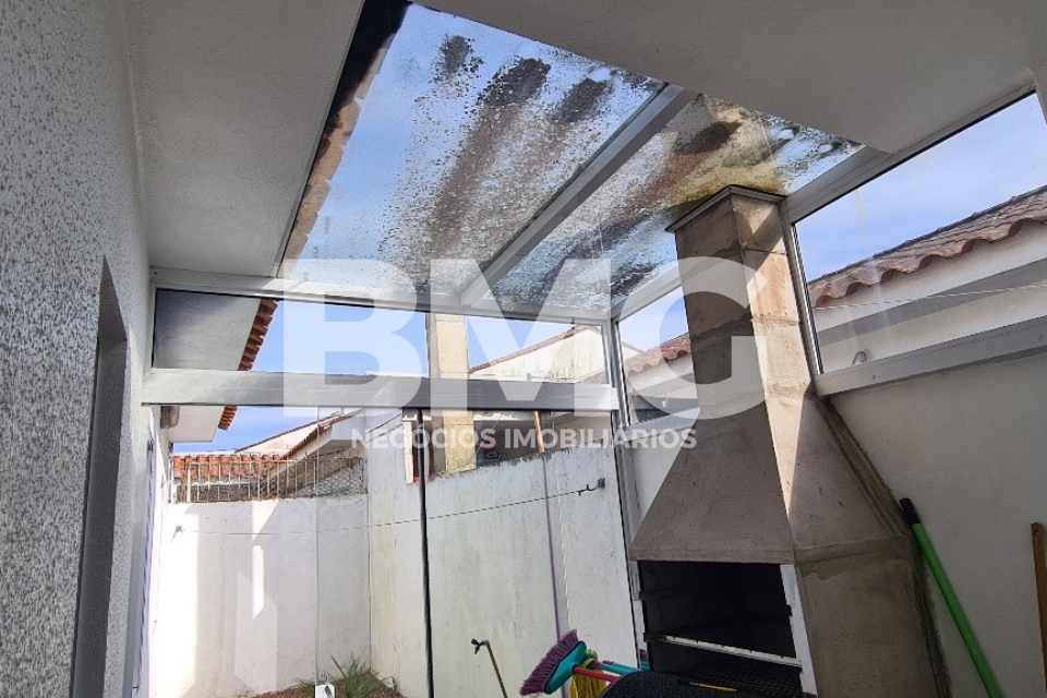 O imóvel possui uma planta funcional com três dormitórios, sala de estar acolhedora e uma cozinha bem distribuída. Um dos grandes diferenciais é a área de serviço fechada com vidro temperado, que se integra ao espaço com churrasqueira, ideal para momentos de lazer. A casa conta ainda com um pátio privativo de 10 m² (5m×2m) e uma vaga de estacionamento coberta com telha de zinco.