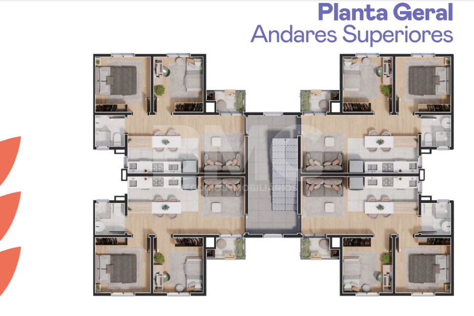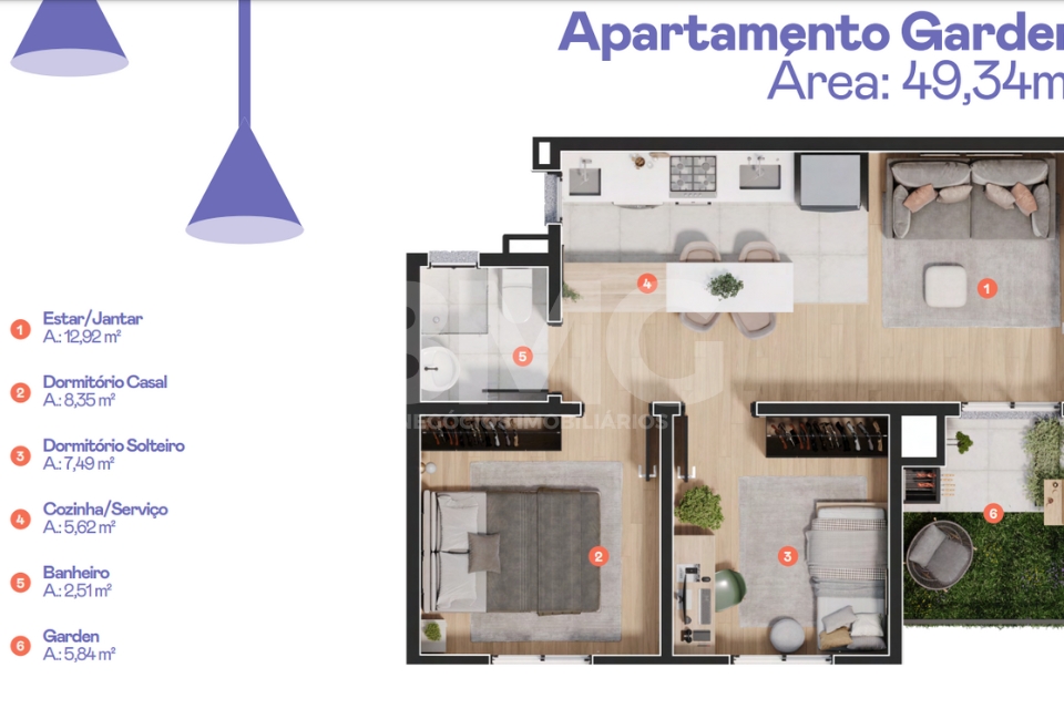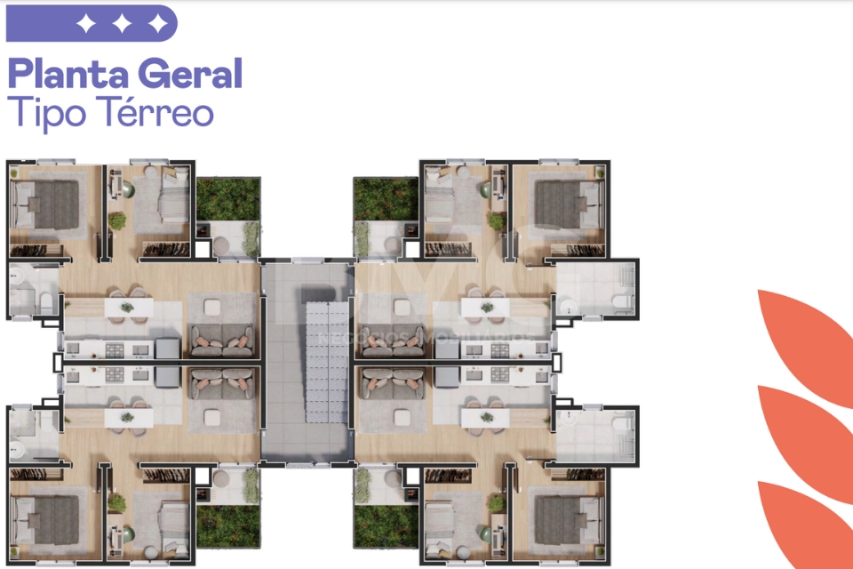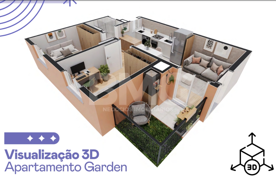 Todos com 2 dormitórios, estar/jantar integrados, sacada ou garden e acabamento de alto padrão.